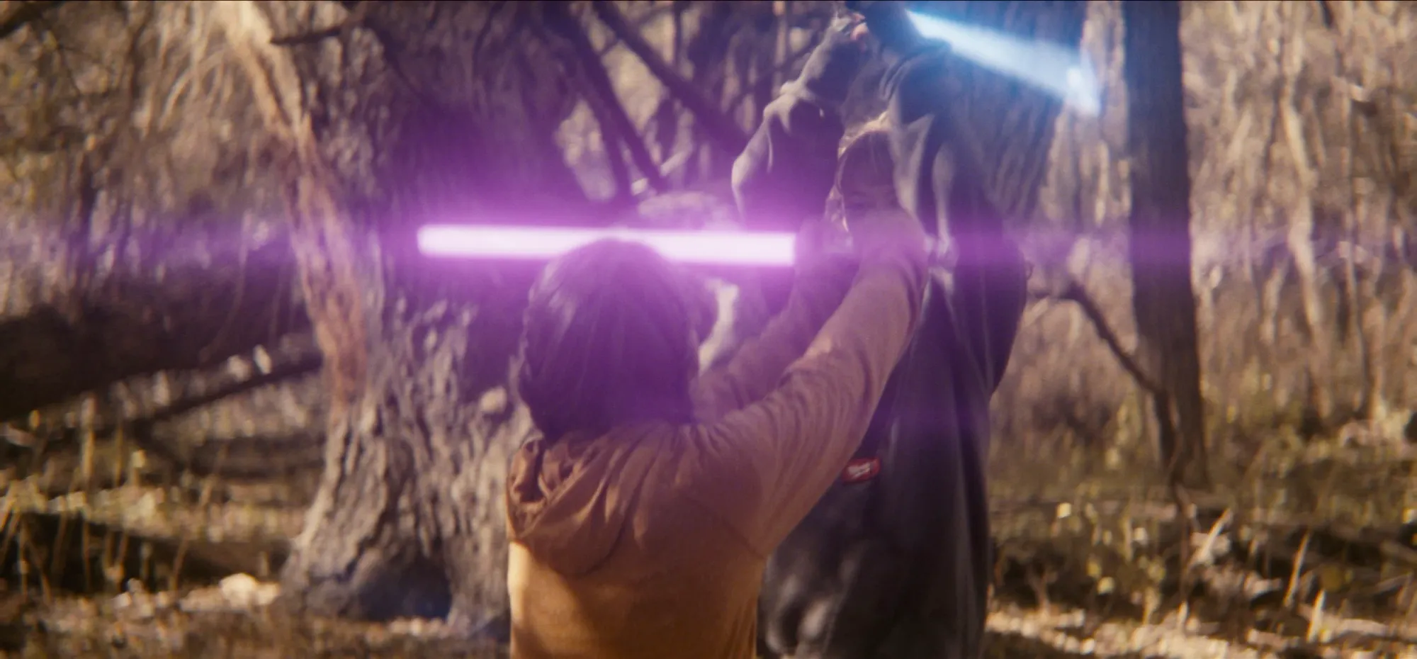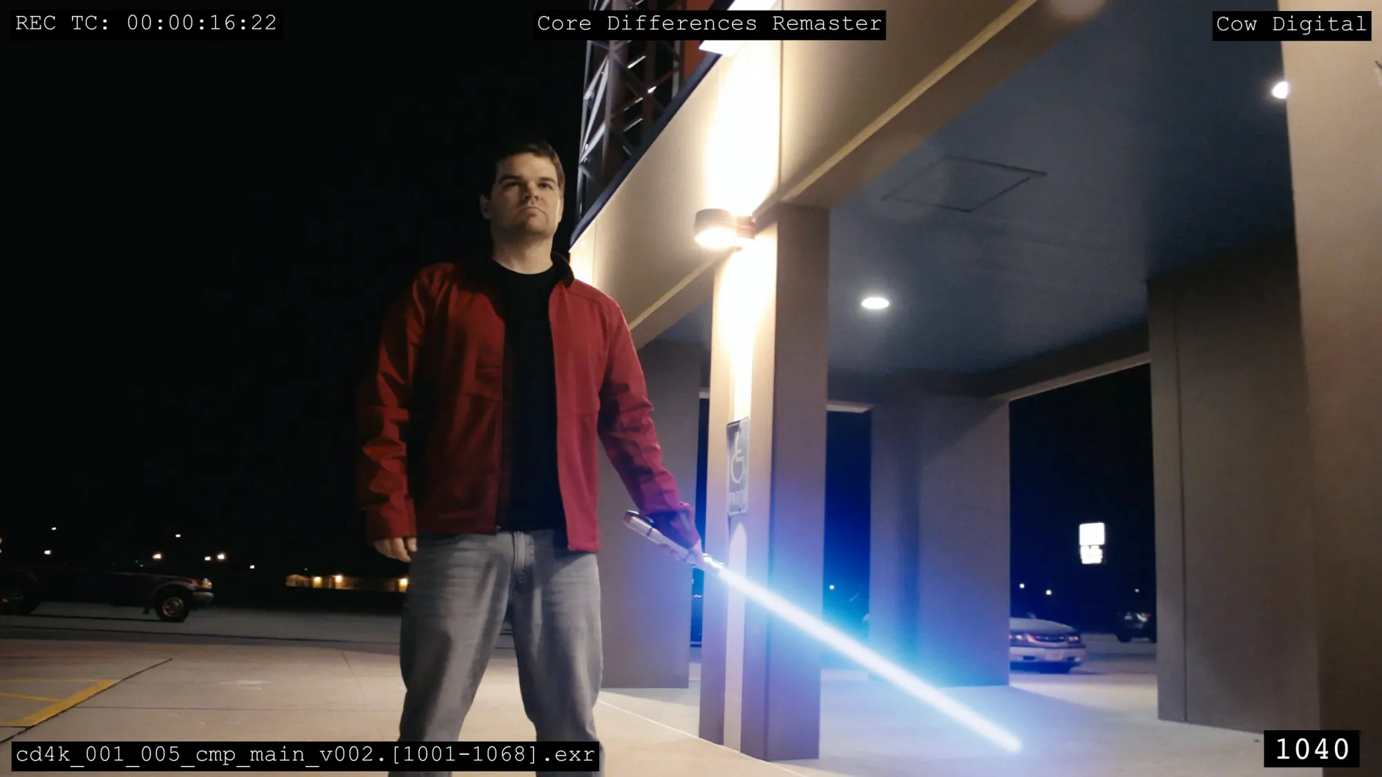 That’s nothing to say about the process of recreating (and updating) the lightsabers, this time in Nuke and in linear space (more on all this later). I’ll gladly risk being accused of George Lucas’ing my own stuff here. But in my opinion, the more refined lightsaber effects in this 4k version stand as much more distinct from one another, both in style and even shade of blue. The new version is less our old fanfilm preferences of yesteryear—a mere “soft” verses “sharp” lightsaber core; hence the title—and more of a celebratory romp between Original Trilogy and Sequel Trilogy—two camps in which we would clearly put ourselves today.